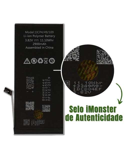 Bateria iMonster Original compatível com iPhone 7 Plus. Nossas baterias são novas e possuem 100% de saúde. Para maior segurança as baterias iMonster são homologadas pela Anatel. Possuem embalagem antiestática que previne consumo no armazenamento e no transporte.